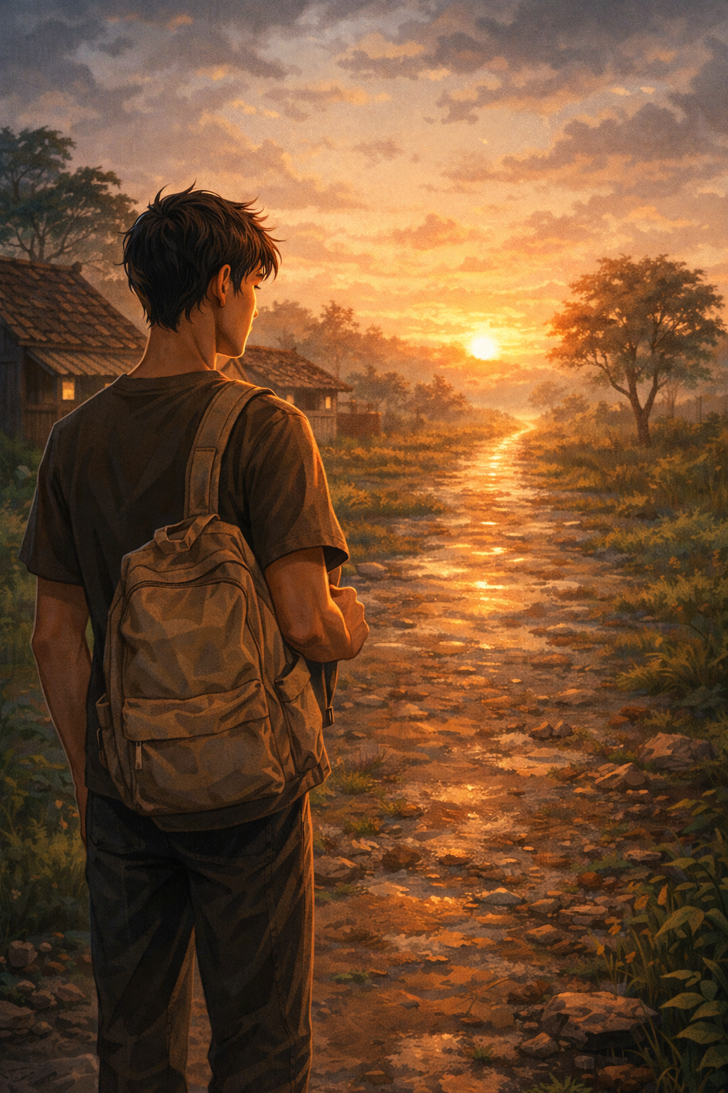 Sore poé éta jalan leutik di tungtung lembur katémbong sepi. Raka nangtung nyorangan di sisi jalan, nyekel kantong leutik anu eusina henteu sabaraha, tapi pinuh ku harepan. Angin ngahiliwir lalaunan, siga nu pamitan.Léngkahna eureun di dinya. Di tukangeunana aya imah kolotna, tempat manéhna digedékeun, tempat seuri jeung cimata kungsi jadi babaturan. Tapi di hareupeunana, aya jalan anyar anu can kungsi dipikawanoh. Haténa karasa beurat, tapi waktu teu bisa ditahan.Indungna baheula sok nyarita, “Hirup téh pilihan, Nak. Ulah sieun lamun kudu milih.”Kecap éta ngagema deui dina pipikiran Raka. Anjeunna ngalieuk ka tukang sakali deui, nengetan imah anu beuki jauh ku panonna. Dina jero haténa, aya rasa hanjakal, tapi leuwih gede deui kahayang pikeun robah.Ahirna, Raka ngaléngkah. Hiji léngkah, tuluy léngkah saterusna. Unggal tapakna jadi bukti yén manéhna geus wani nyokot kaputusan. Léngkah panungtung tina kahirupan baheula, sarta léngkah munggaran kana hirup anu anyar.Panonpoé mimiti tilelep. Dina cahaya senja, Raka seuri leutik. Anjeunna teu nyaho naon anu bakal kajadian isukan, tapi ayeuna anjeunna yakin: anjeunna geus milih pikeun maju.Piwuruk: Kadang, léngkah panungtung téh lain ahir, tapi awal tina carita anyar.